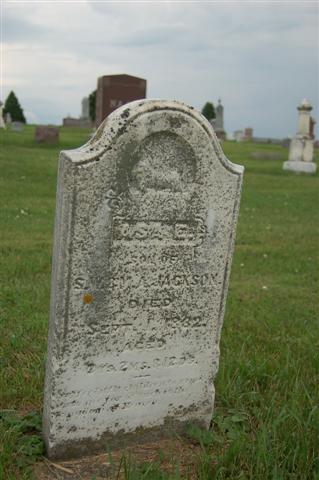 Jackson, Asa E., Son of S. W. & M. A., Died 1 Sept 1882, Aged 3 Yrs 2 Ms & 12 Ds Suffer the little children to come Unto me for such is the kingdom of heaven.