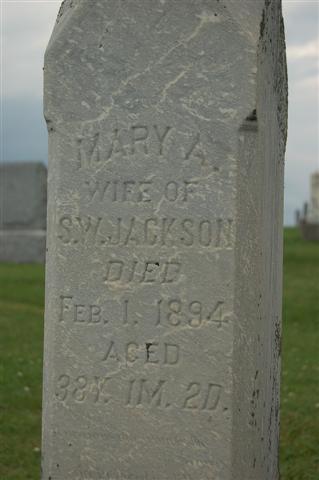 Jackson, Mary A., Wife of S. W. Jackson, Died 1 Feb 1894, Aged 38 Y. 1 M. 2 D.