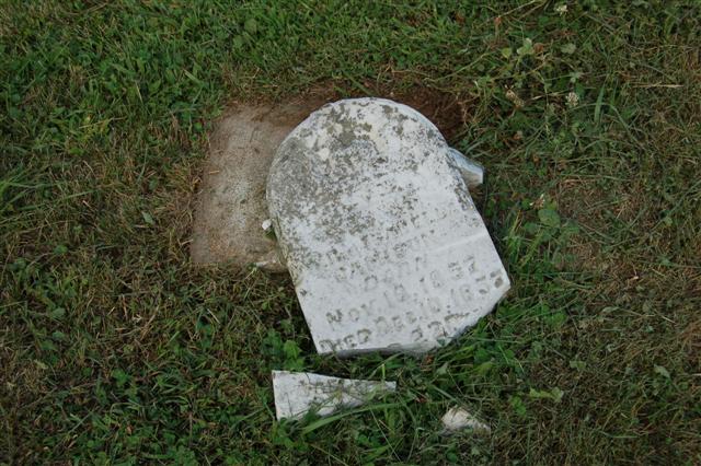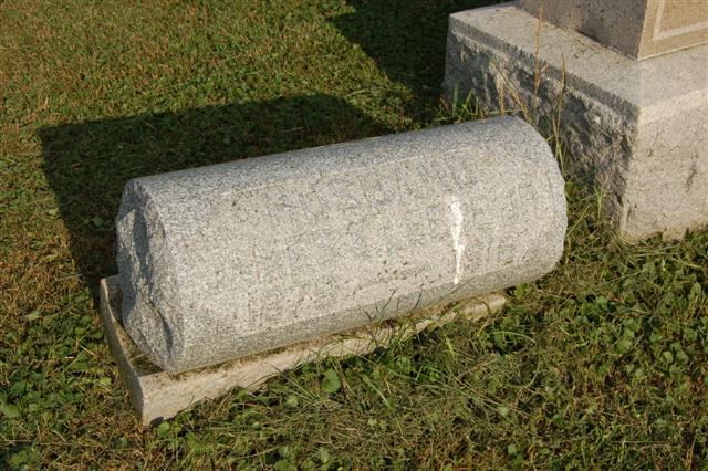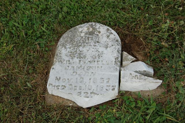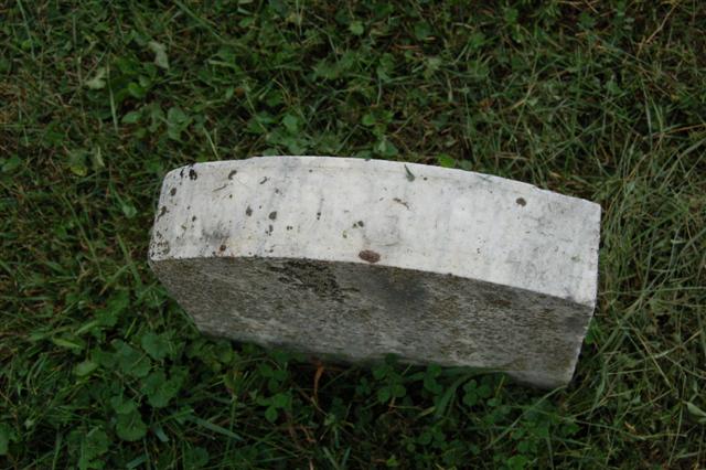 Jamison, Melvina, Dau of W. R. & Isabella, Born 18 Nov 1857, Died 10 Dec 1857, Aged 22 Days [picture taken 13 August 2008, I moved the pieces back unto the cement base, wishing I had the knowledge to repair it.]