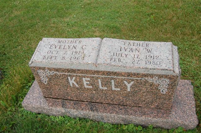 Kelly, Evelyn C., 7 Oct 1914 - 8 Sept 1964, Mother Ivan W., 17 July 1912 - 27 Feb 1980, Father [it was trying to rain but the Lord held it off till I was done, then it poured]