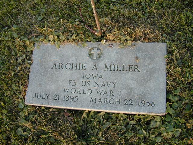 Miller, Archcie A., Iowa, F3 US NAVY, WORLD WAR I, 21 July 1895 - 22 March 1958