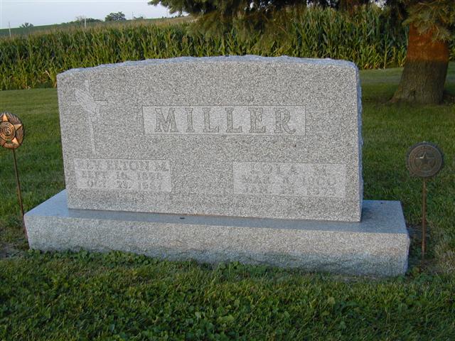 Miller, Rev. Elton M., 16 Sept 1896 - 23 Oct 1987 Lola M., 8 Mar 1900 - 25 Jan 1973 Parents of Leland, Robert, Richard, Elton Jr., William, Paul, Elaine, Ruth, Beverly, Nancy