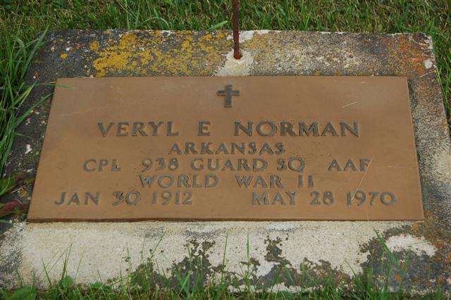 Norman, Veryl E., Arkansas, CPL 938 Guard SQ AAF, World War II, 30 Jan 1912 - 28 May 1970